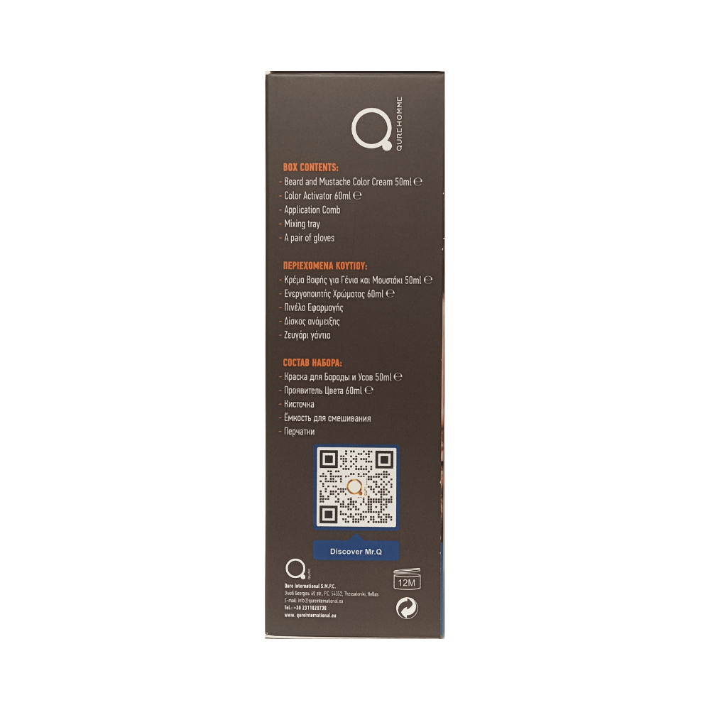**Για βέλτιστα αποτελέσματα κάλυψης και μεγαλύτερη διάρκεια, προτείνουμε την ανάμιξη με το Hair, Beard and Mustache Activator 60ml – Ενεργοποιητής Βαφής της Qure.