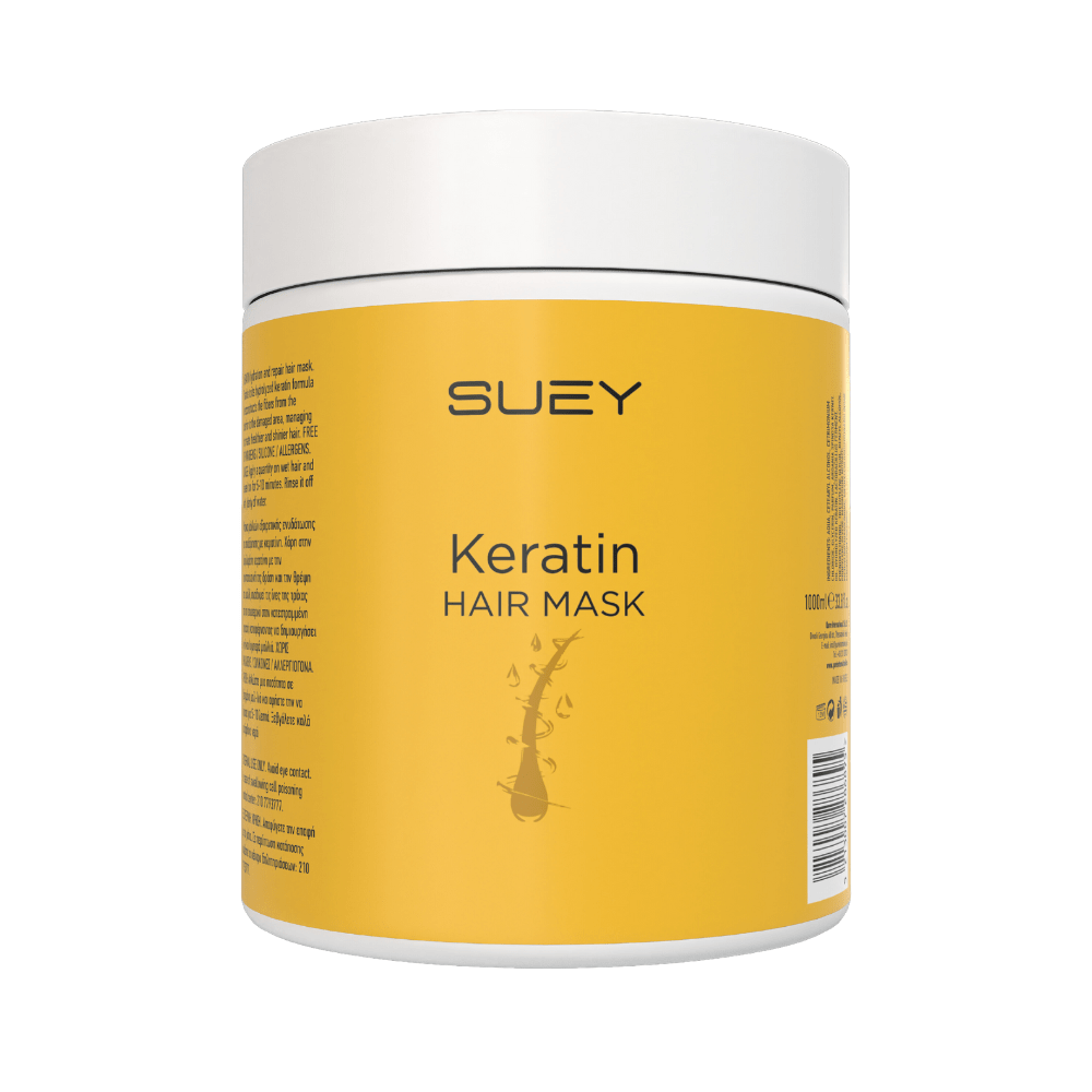 Η Keratin Hair Mask 1000ml by Suey προσφέρει την απόλυτη περιποίηση σε κάθε τύπο μαλλιών – από ξηρά και ταλαιπωρημένα έως κανονικά και λιπαρά.